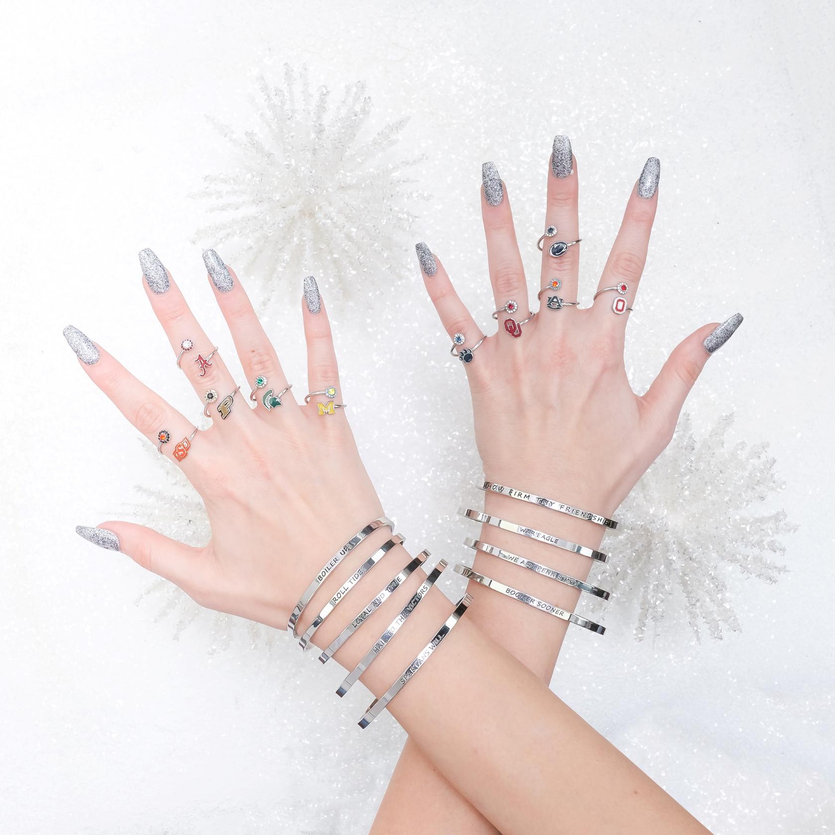 Stone Armory's Oklahoma Spirit bangle is finally here! Gear up for the game with our beautifully designed University of Oklahoma bracelet, a stainless steel open bangle engraved with 'Boomer Sooner'. Wear it to the next tailgate or around town to show off your Oklahoma Sooner pride. This adjustable OU bangle would also make the perfect Oklahoma gift for your favorite Oklahoma Sooners fan! Stone Armory's University of Oklahoma jewelry is made of stainless steel and is adjustable in size, making this NCAA Oklahoma bangle the perfect gift to celebrate Oklahoma graduation, birthdays, Mother's Day, first day of school, the first game, or for everyday fan wear. Thank you for supporting our small business!