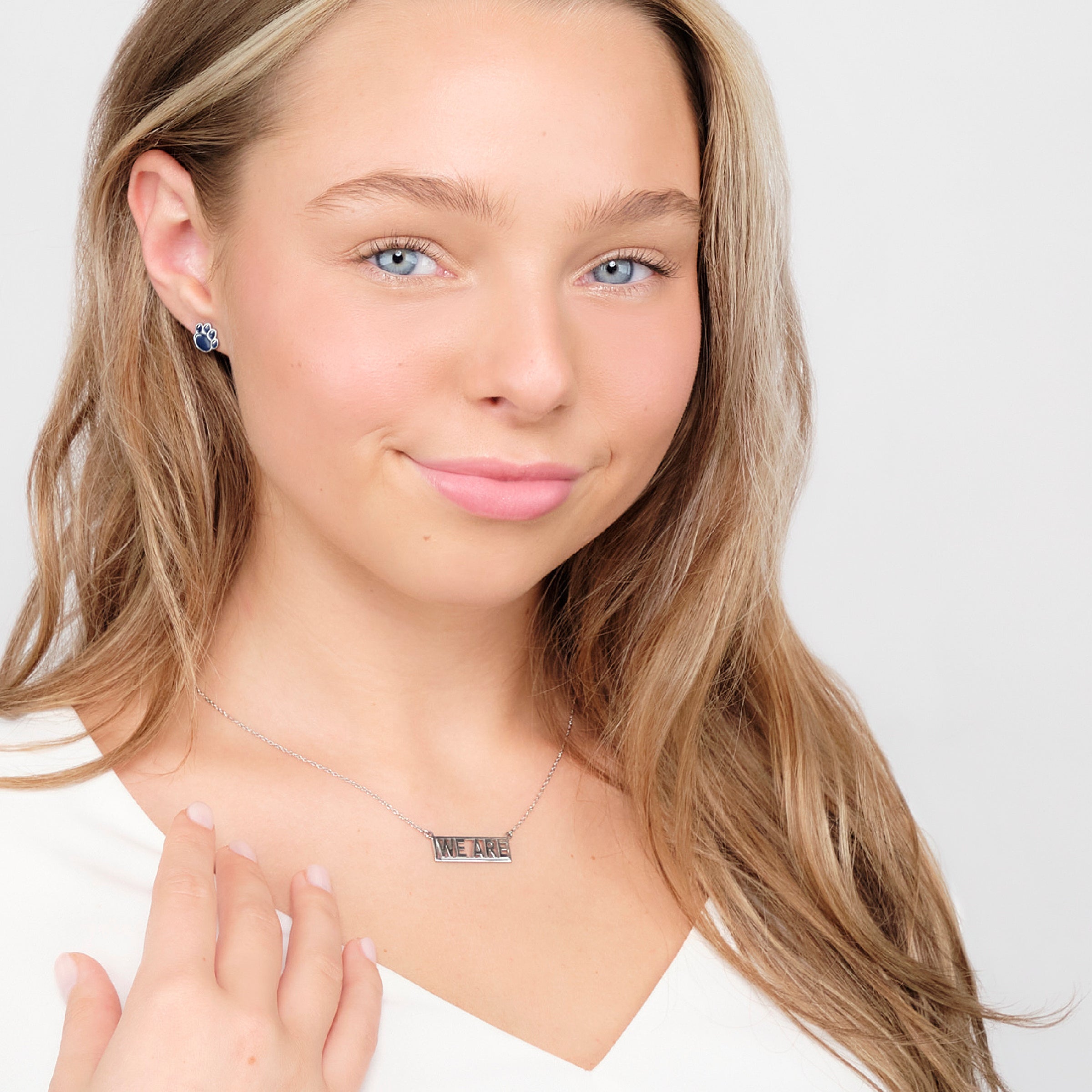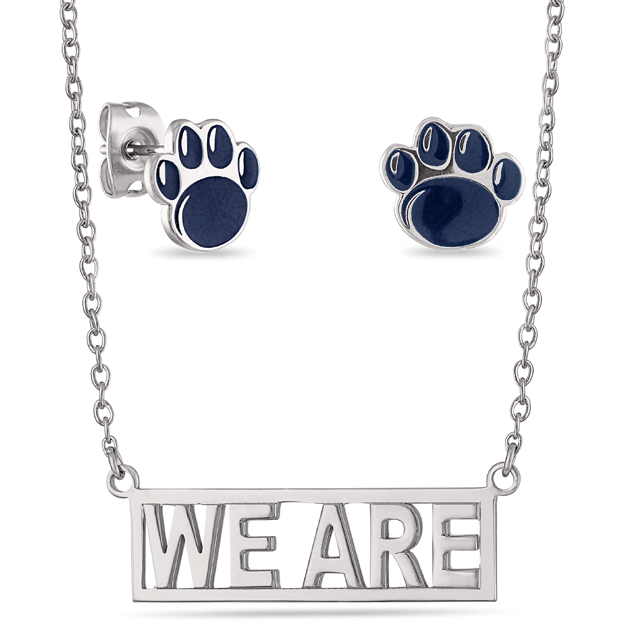 • YOUR PERFECT FIT: This Pennsylvania State University jewelry set features stud earrings and an adjustable necklace that fit most. Add this classic Penn State earring and necklace set to your collection to show off your beloved Penn State Nittany Lions school and team! The lion paw stud earrings measure 11.3mm wide x 8.1mm tall; the WE ARE necklace is adjustable from 16-20 inches.