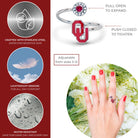 ❤️THE PERFECT University of Oklahoma GIFT: This OU Sooners ring is adjustable in size and will fit most, making it the perfect womens gift for yourself, Oklahoma fans, graduates, students, moms, sisters, daughters and Oklahoma alumni. Great gift for Mother's Day, Christmas, birthdays and graduation. Boomer Sooner!