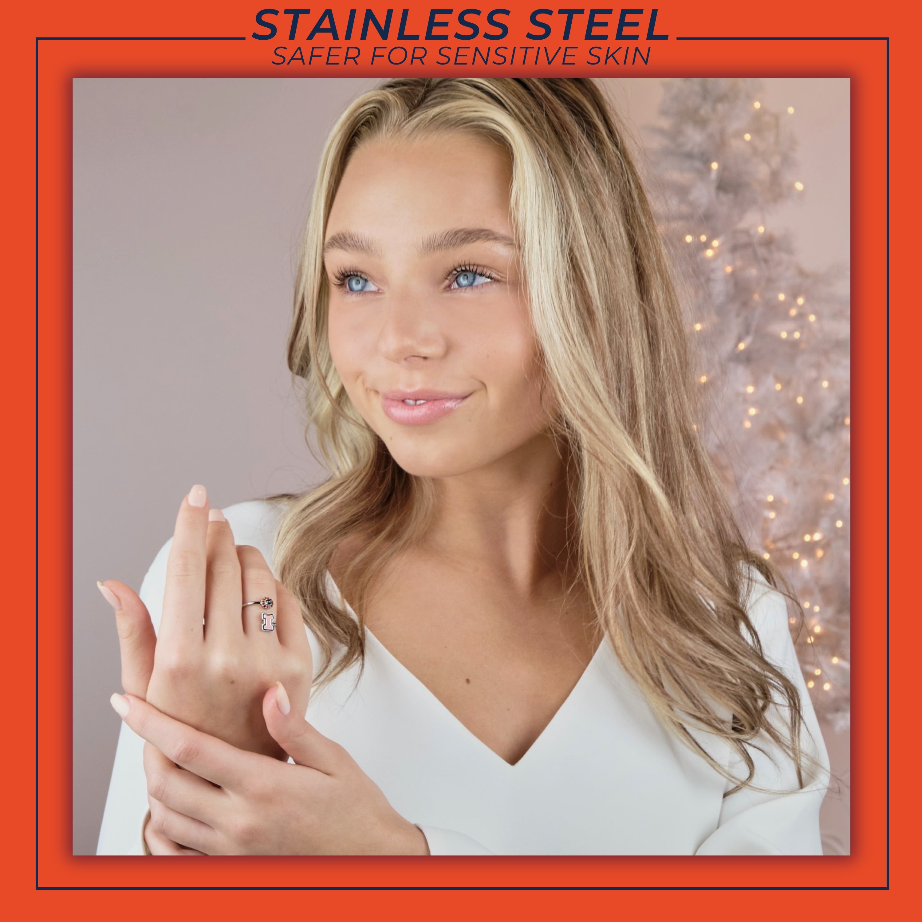 Stone Armory's Illinois ring is finally here! Gear up for the game with our beautifully designed Illinois Fighting Illini ring! Wear it to the next tailgate or around town to show off your University of Illinois pride. This adjustable U of I ring would also make the perfect Illinois gift for your favorite Illinois Fighting Illini fan! The Illinois logo is accented by sparkling orange and blue crystals. Stone Armory's U of I jewelry is made of stainless steel and is adjustable in size, making this NCAA Illinois ring the perfect gift to celebrate Illinois graduation, birthdays, Mother's Day, first day of school, the first game, or for everyday fan wear. Thank you for supporting our small business!