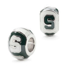 🤍YOUR PERFECT FIT: This Michigan State University set of two charms features one green Block S stripe bead and one white Block S stripe bead that fit most popular charm bracelet brands, or you can add them to a necklace chain to create your own Michigan State design! Add this classic Michigan State charm set to your collection to show off your beloved Michigan State Spartans school and team. The green Block S stripe bead measures 10.85mm in diameter with a 5.05mm opening; the white Block S stripe bead is the same.