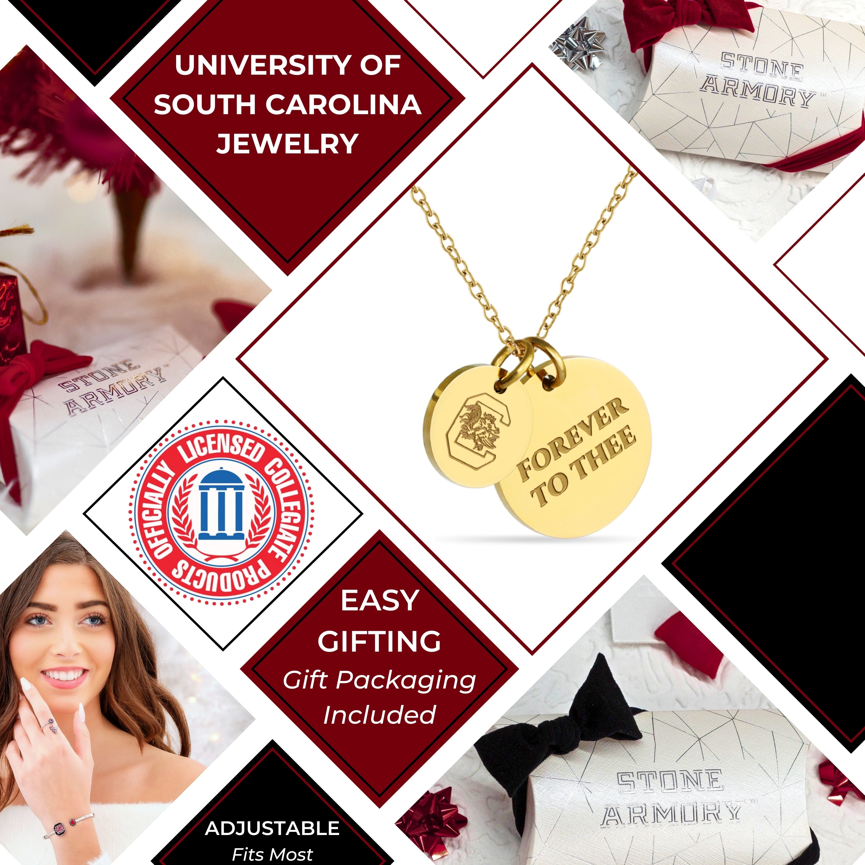 • Express Your South Carolina Gamecocks Spirit Every Day: This officially licensed Stone Armory University of South Carolina necklace features 18K gold-plated pendants engraved with the iconic Fighting Gamecock and the mantra 'Forever to Thee.' Designed for both casual and game-day wear, this adjustable necklace (16-20 inches) makes the perfect gift for South Carolina fans, students, and alumni