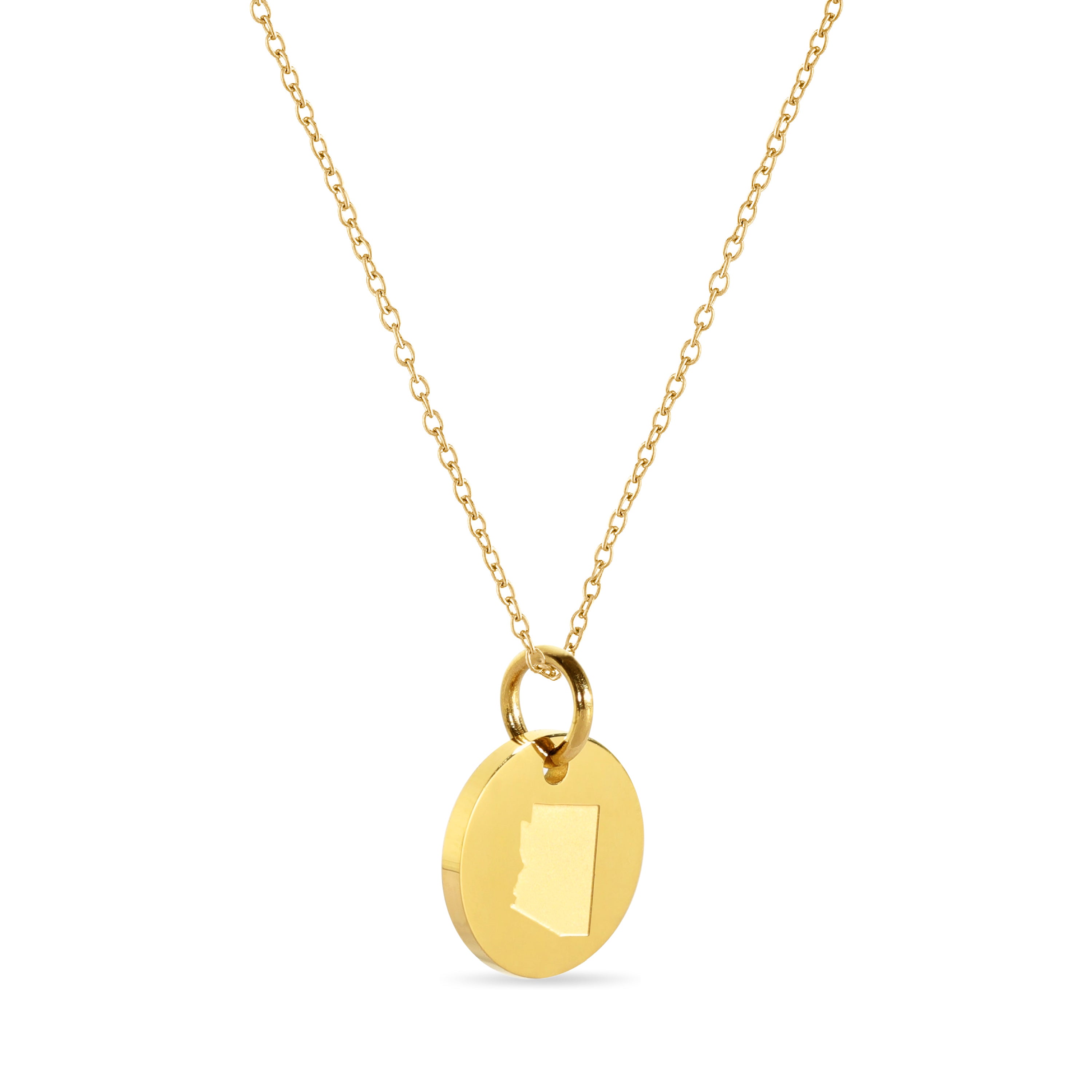 Arizona Map Engraved Charm Necklace - 18K Gold Plate