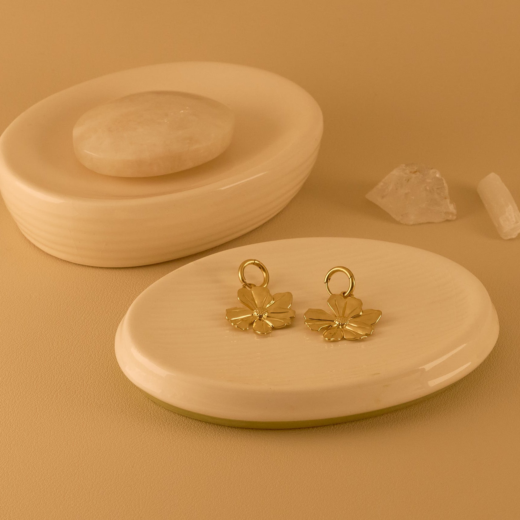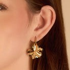 Huggie Hoops with Oversized Flower Dangle in Gold