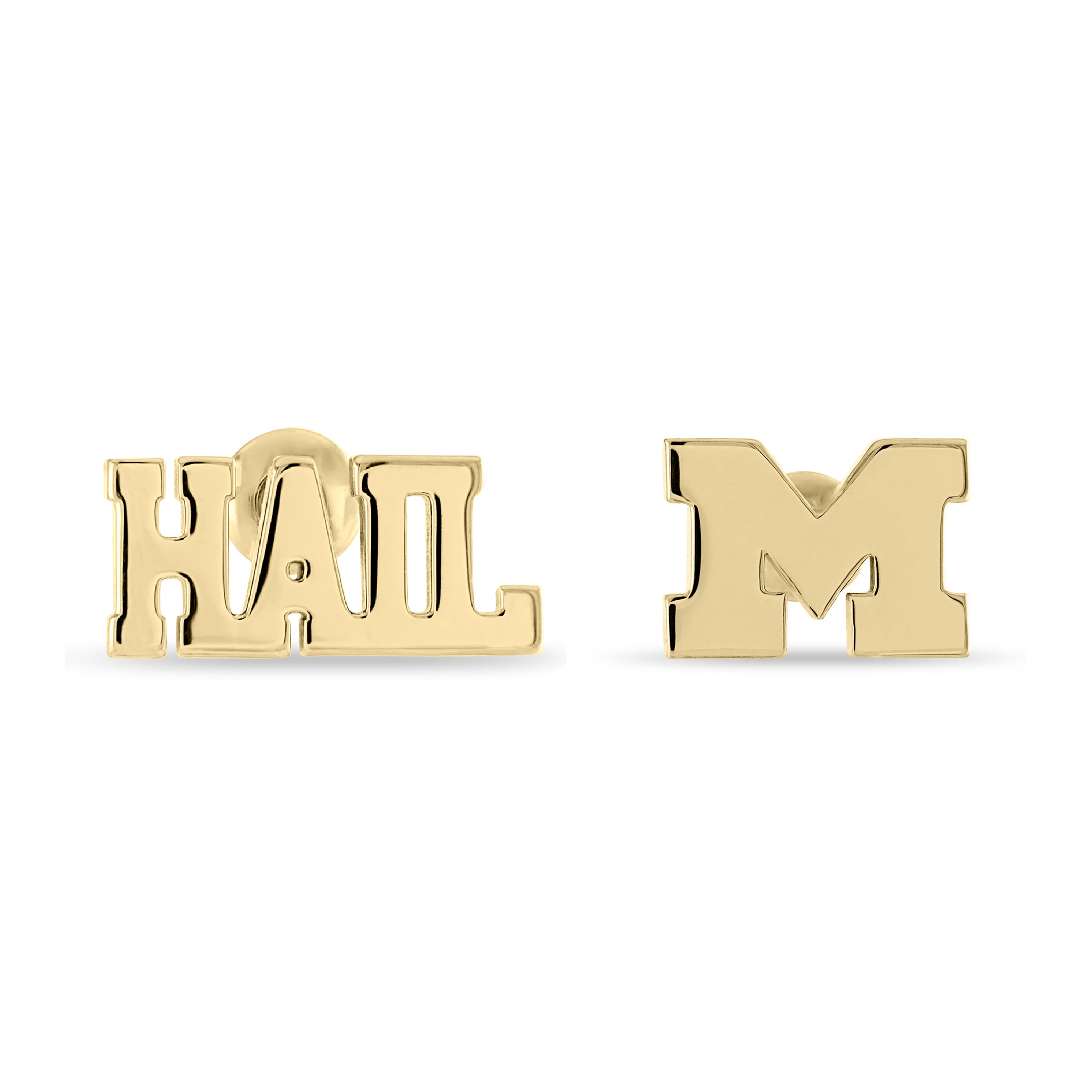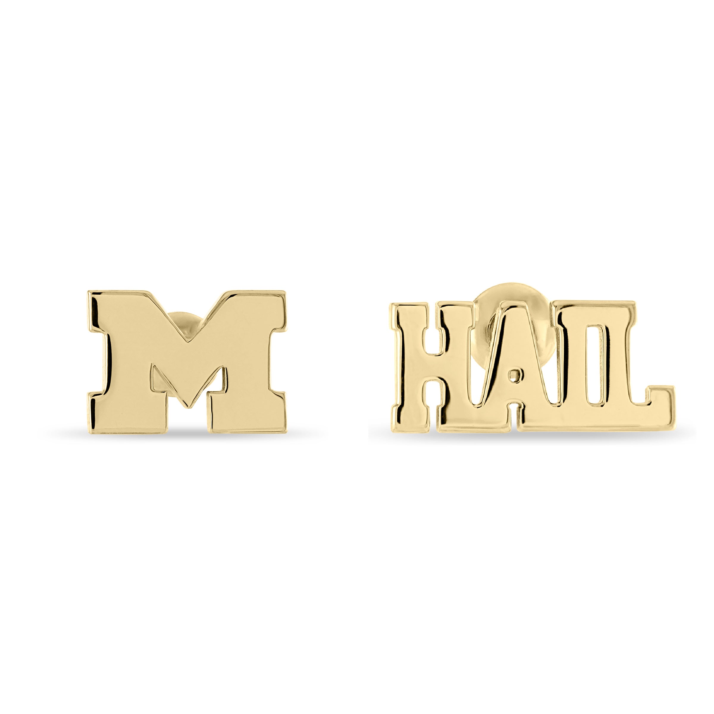 Your Perfect Fit - These University of Michigan stud earrings are always the perfect fit. Show off your beloved Michigan football team and school with these statement earrings! The Hail stud earring measures 13.48mm wide x 6.20mm tall; the Block M stud earring measures 10.50mm wide x 7.54mm tall.
