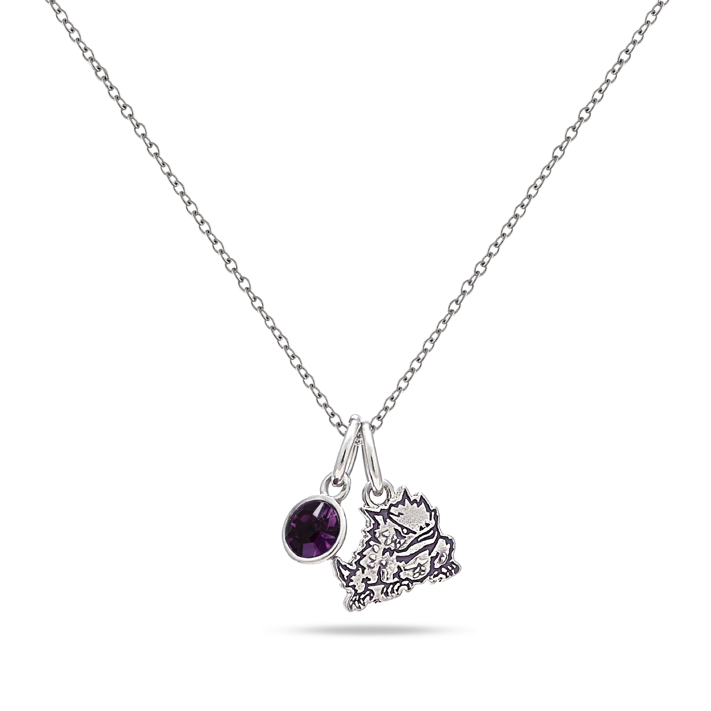 💜TREASURE YOUR TCU Horned Frogs SPIRIT: This Texas Christian University crystal necklace from Stone Armory is officially licensed. Showcase your Horned Frog spirit with this classic TCU design, featuring a(n) Horned Frog dangle charm and a sparkling purple crystal accent.