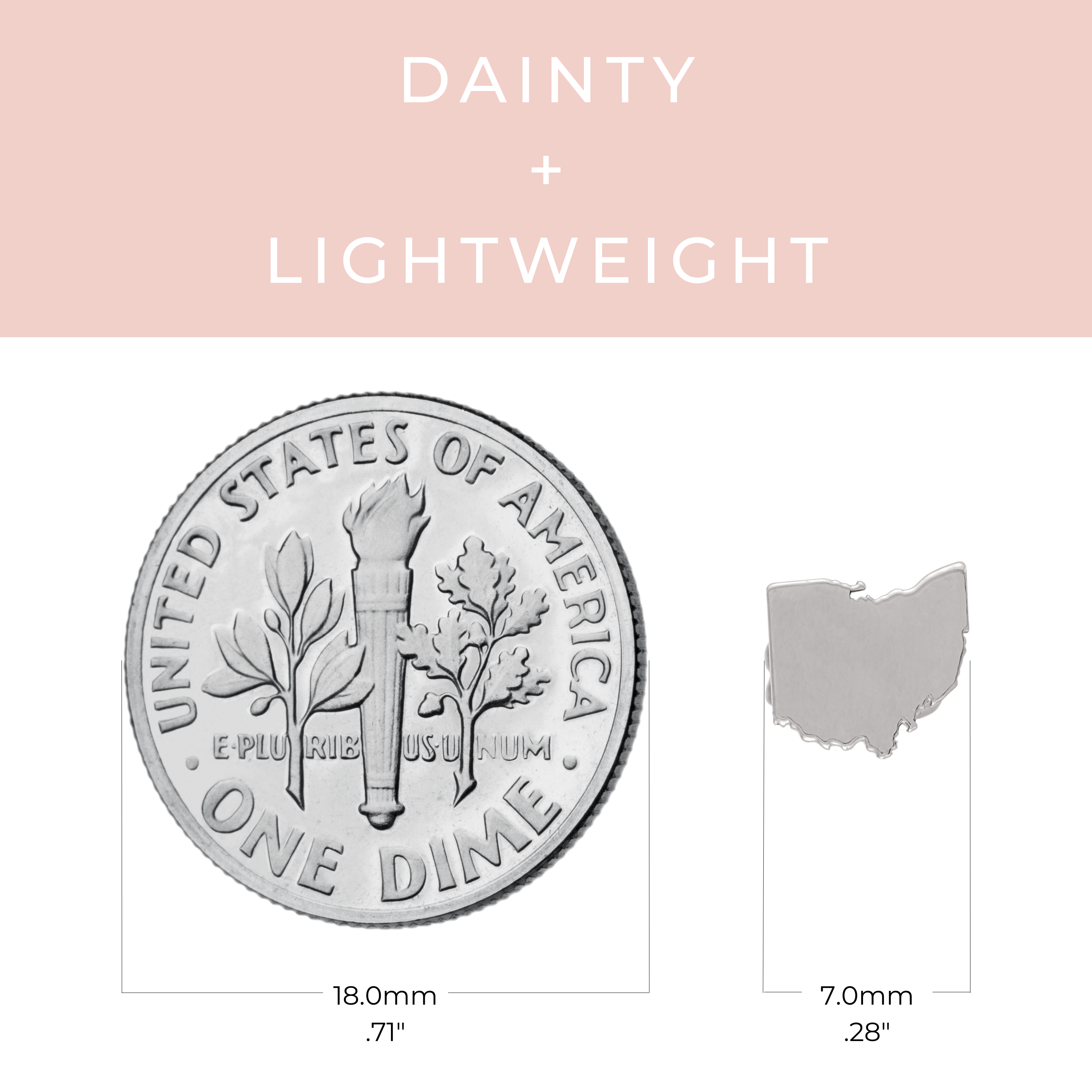 These adorably dainty State of Ohio stud earrings will make the perfect gift. Made of high quality stainless steel and carefully crafted to show the details of our beautiful buckeye state. These Ohio earrings are light and comfortable to wear.
