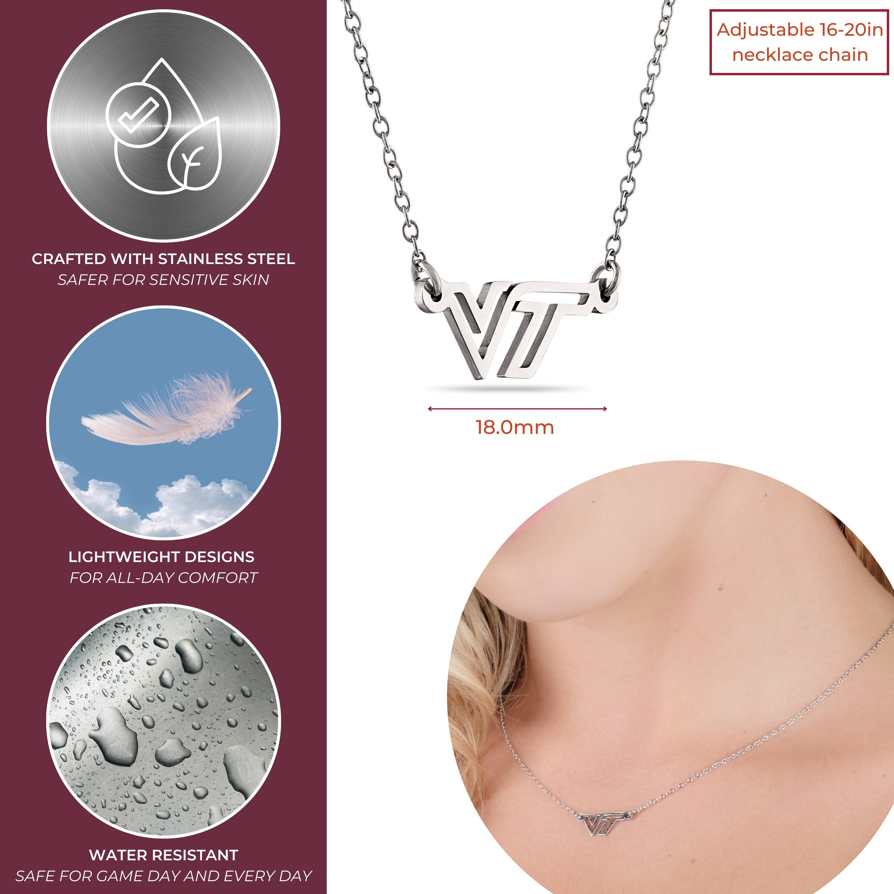 Stone Armory's Virginia Tech VT Logo necklace is finally here! Gear up for the game with our beautifully designed Virginia Tech Hokies necklace! Wear it to the next tailgate or around town to show off your Virginia Polytechnic Institute pride. This adjustable Virginia Tech necklace would also make the perfect Virginia Tech gift for your favorite Virginia Tech Hokies fan! Stone Armory's Virginia Tech jewelry is made of stainless steel and is adjustable in size from 16-20 inches, making this NCAA Virginia Tech necklace the perfect gift to celebrate Virginia Tech graduation, birthdays, Mother's Day, first day of school, the first game, or for everyday fan wear. Thank you for supporting our small business!