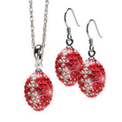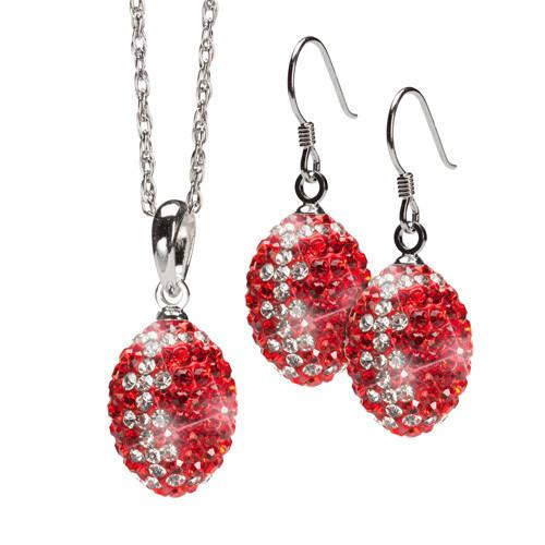 Add this red and clear jewelry set to your game day gear! Includes a pair of red and clear crystal earrings and a crystal charm pendant with necklace chain. Made of Austrian crystal with a silver core.