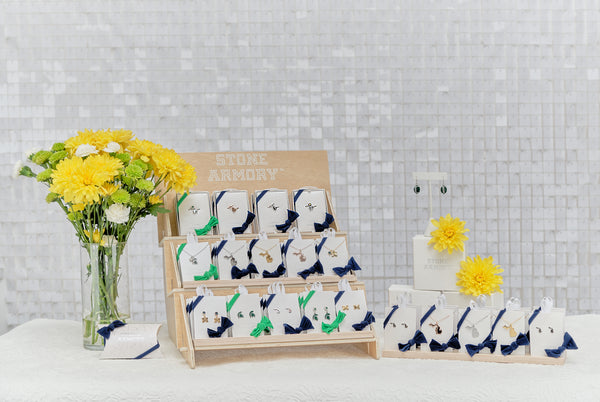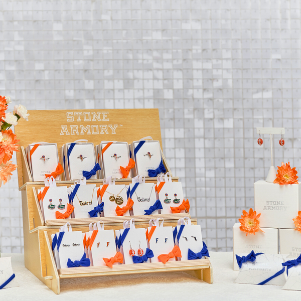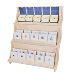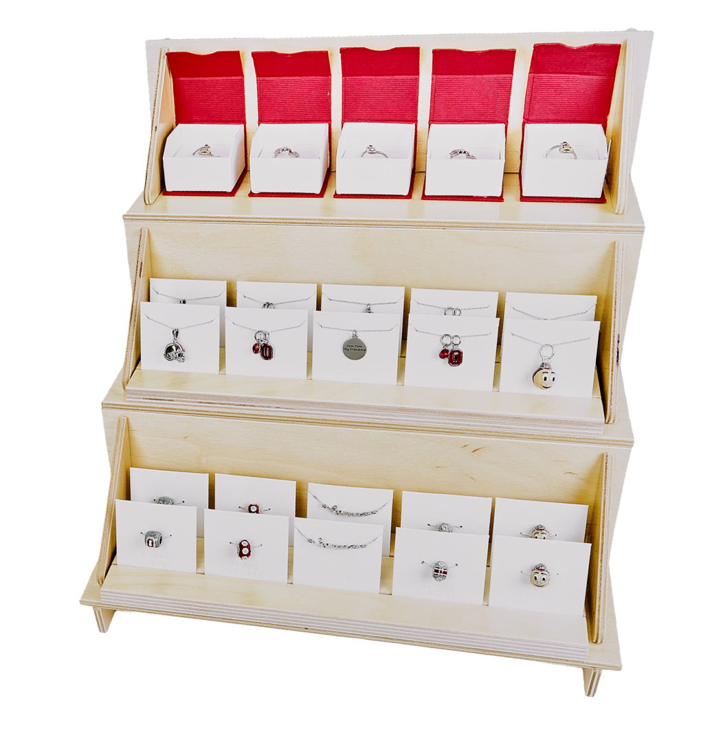 FREE when you purchase 60 pieces to Fill Display. Discount Provided on Final Invoice, after checkout. *3-tiered wooden stand for carded and boxed jewelry. *Each row holds up to 15 small cards (5 in each of 3 slots), 9 large necklace cards (3 in each of 3 slots) or 10 boxes (when stacked) *mix and match to create your own unique display! *Left to Right: 13.25" Top to Bottom: 10.75" Front to Back: 13.25"
