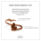 • 🌊YOUR PERFECT FIT: This antique copper plated Michigan ring is adjustable, fitting sizes 4.5-12 - simply expand or contract to find your perfect fit! Add this classic Michigan ring to show off your beloved Mitten State.