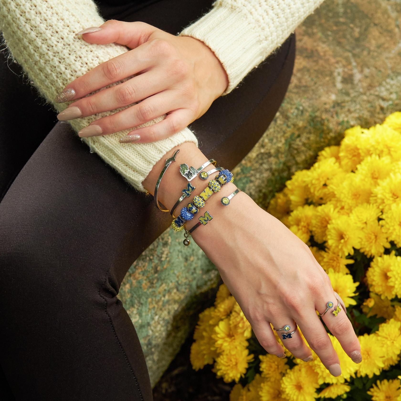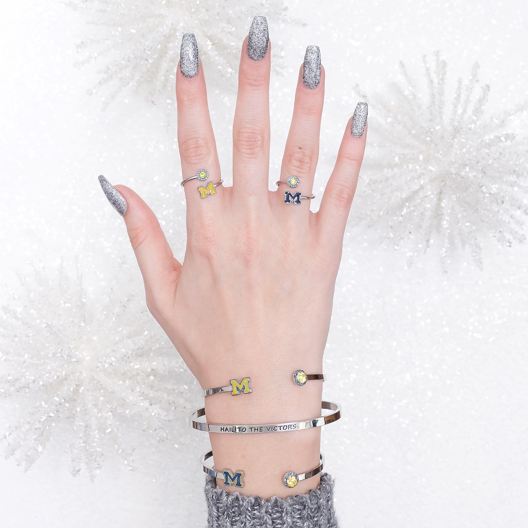 💛TREASURE YOUR Michigan Wolverines SPIRIT: This University of Michigan crystal bangle from Stone Armory is officially licensed. Showcase your Wolverine spirit with this classic Michigan design, featuring a maize Block M and sparkling maize and blue crystal accents.